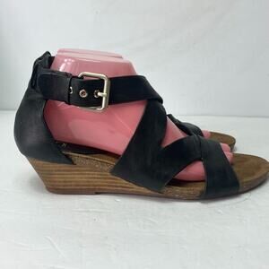 Sofft Sandals Womens 9M Black Leather Crukis Wedge Cushioned Open Toe Adjustable