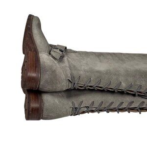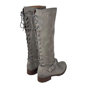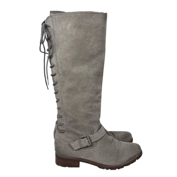 Sofft Selden Lace Up Riding Boots SZ 7 Gray Suede Western Renaissance Pirate
