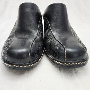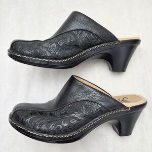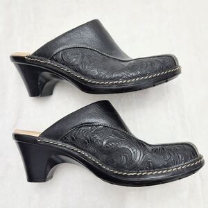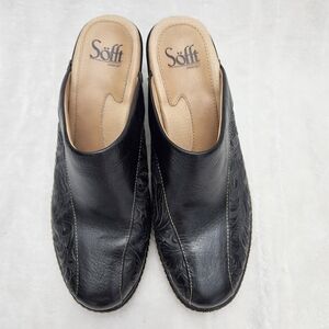 Sofft Shoes Womens 7.5 M Mule Black Leather Tooled Closed Toe Cone Heels 1009401