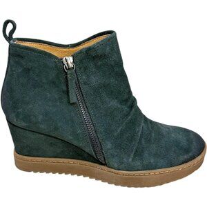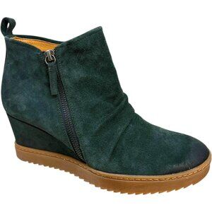 Sofft Siri Hunter Green Suede Ruche Wedge Outer Zip Booties
