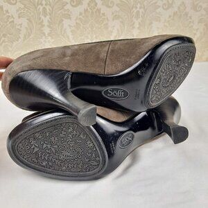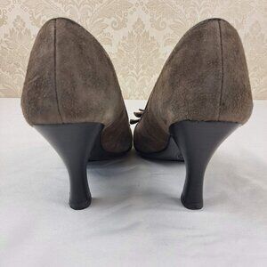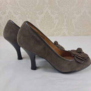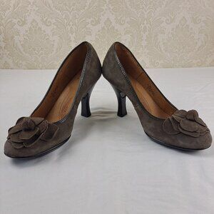 Sofft Size 8W Fiorella Gray Suede Leather Heels Flower on Front Round Toe NWOT