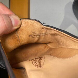 Black. Intricate Paisley embroidery clogs with spoon heel. Good condition all around, leather exterior, insole, tread all in good shape, minor signs of wear here and there.