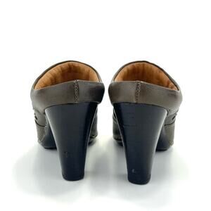 Sofft Soleil High Heel Clog/Mule Size 7.5 Brown/Green Leather Cushioned Studded