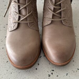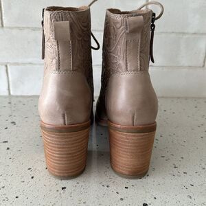 Sofft Sondra Light Taupe Leather Embossed Floral Block Heel Ankle Boots Size 9.5