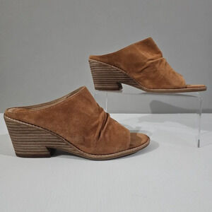 Sofft Strathmore Mule Womens 9.5 Ginger Tan Suede Peep Toe Wedge Heel