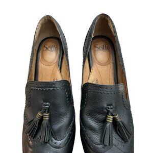 Sofft Tailyn Oxford Tassel Heels Black Size 10 Leather Peasant Minimalist Office