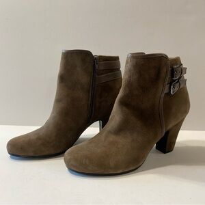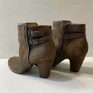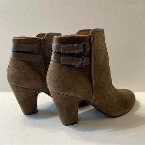 Sofft Taupe Suede Leather Block Heel Double Buckle Heel Booties Size 10