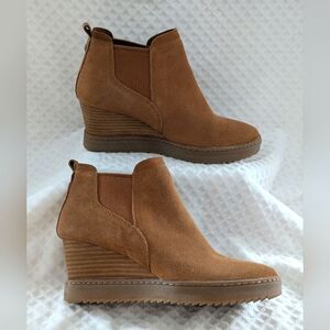 Sofft Utley Redwood Brown Wedge Bootie, Stacked Heel, Women's Size 7 1/2