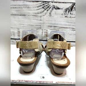 Sofft Vanita Wedge Sandal Cream Gold 10W Leather Vacation Resort Comfort