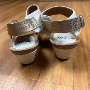 Sofft Vanita Womens Size 9.5M Taupe Gold Leather Slingback Wedge Sandals