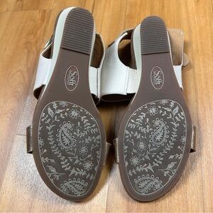 Elegant Sofft sandals with white leather. Gold strap for a stylish touch. Ideal for versatile wear.