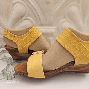 Sofft Verdi Wedge Sandals. "Lemon Yellow". Leather. NIB. Size 6.5. NIB/Original box/packaging. No rips/stains/scuffs/tears or peeling. Brand new. Box has some minor damage. Smoke free home. No odors. All offers are welcome. Thank you!