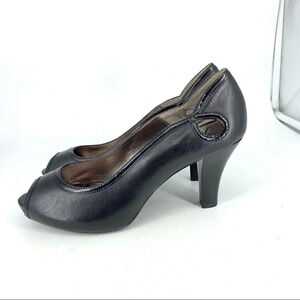 Sofft Women 9.5 High Heels Black Leather Peep Toe Slip On Shoes Career Pumps