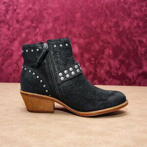 Sofft Women Aliene II Black Distress Suede Western Cowboy Buckle ankle Boots sz