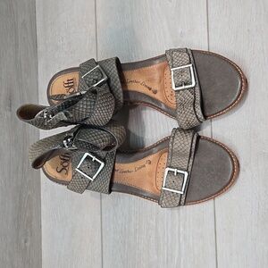 Sofft Women Manryn Snae Grey Leather Heels with Chunky Wooden Heel Sz 10M