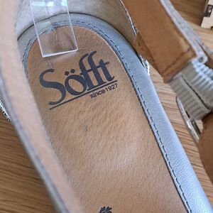 Sofft Women’s 41 EU 9.5 Metallic Silver Leather Strappy Open Toe Buckle Sandals