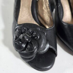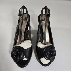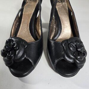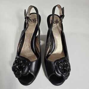 Sofft Womens 7.5 M Sling Back Leather Pump Floral Black Embellished 3.5" Heels