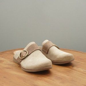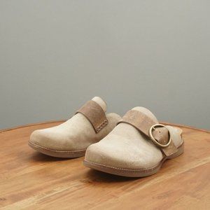 Sofft Womens Billie Clogs Mules Beige Nubuck Leather Wedge Heel Size 7M