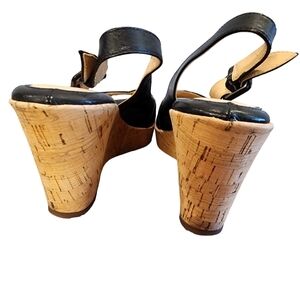 Sofft Womens Black Leather Open Toe Wedge Heels Size 7.5 7 1/2 Sling Back