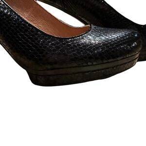 Sofft Women’s Black Leather Snakeskin Print Pumps with small Platform Size 9