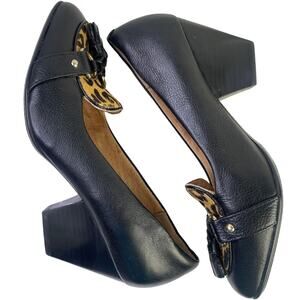Sofft Womens Black Leopard Leather Pumps 3" Heel Tassles Gold Accents Size 6.5