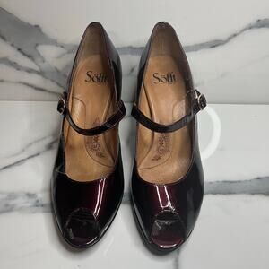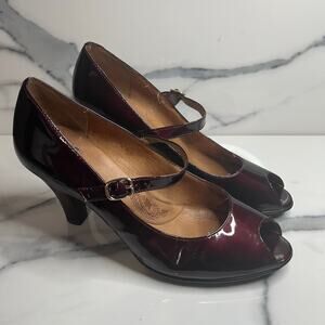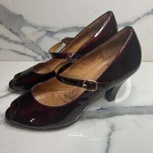 Sofft | Women's Burgundy Patient Leather Peep Toe Octavia Mary Jane Pumps Sz 9.5