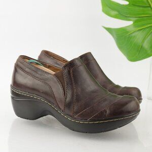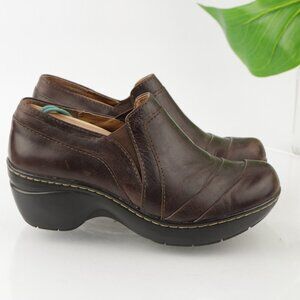 Sofft Womens Clog Size 6 Brown Leather Wedge Platform Slip On Work Shoe Comfy
