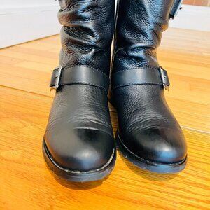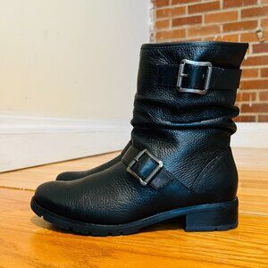 Sofft Womens Lalana Boot Size 7 Black Leather Biker Harness Buckle Moto Boots