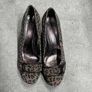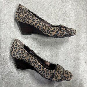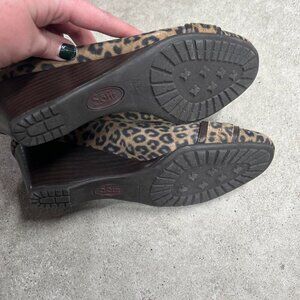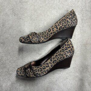 Sofft Womens Leopard Animal Print Closed Toe Wedges Buckle Detailed Size 7M