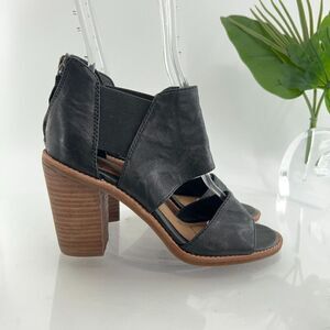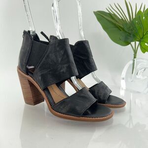 Sofft Womens Pemota Sandal Size 6 Black Leather Block Heel Back Zip Strappy