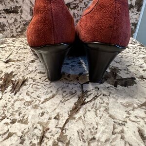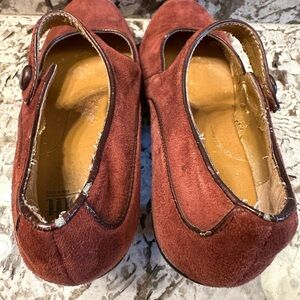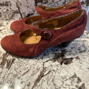 Chic Sofft Mary Jane heels in burgundy. These are very comfortable but very worn, would need inner lining re-done or great for theater/shows or plays. The soles are still in great condition. Kitten heel length.