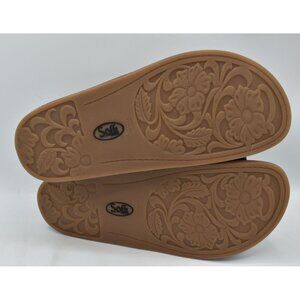 Sofft Womens Size 8 Adalia Croc Embossed Black Suede Leather Sandals Shoes