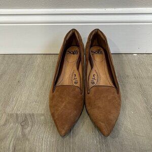 Sofft Women’s Tan Beige Leather Suede Kitten Heel Point Toe Shoes Size 7