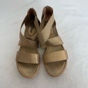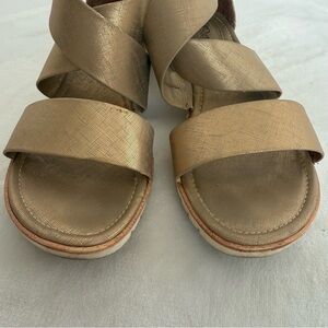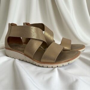 Elegant Sofft sandals with crisscross straps. Gold and tan hues. Ideal for everyday wear. Condition pre owned Size 9.5
