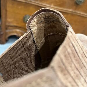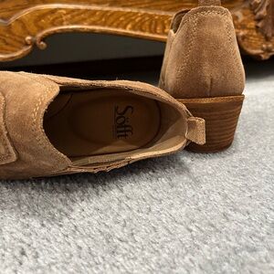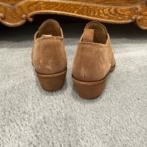 Elegant tan suede ankle booties. Perfect for any occasion. Comfortable and stylish.