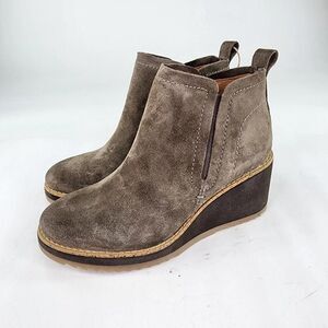 Sofft Womens EMEREE Taupe Suede Ankle Boot US 7 M Wedge Ankle Boots Shoes