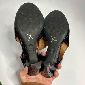 Sofft black patent leather sling back pumps peep toe shoes size 8.5