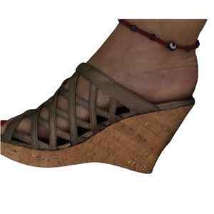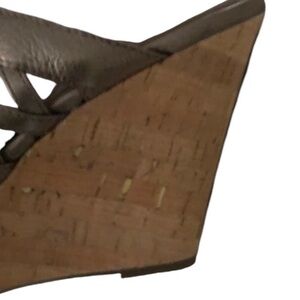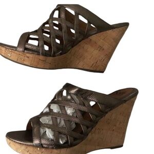Sofft size 10 silver metallic open toe platform wedge w/ box like new