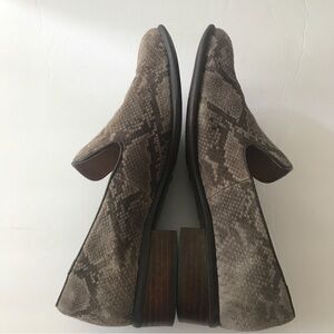 Sofft women’s suede snakeskin comfort loafers size 8.5 tan & brown. Leather upper, lining and sock.