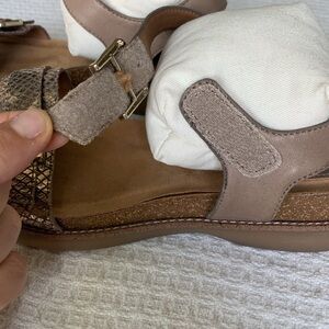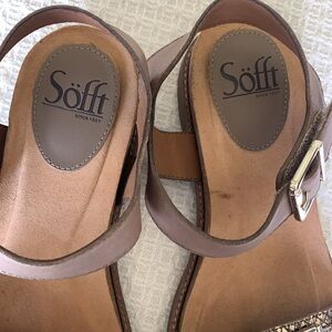 Sofft taupe and metallic snakeskin leather sandals size 7