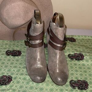Sofft women’s size 9 boots ankle booties sparkle tan buckles wedge comfy neutral