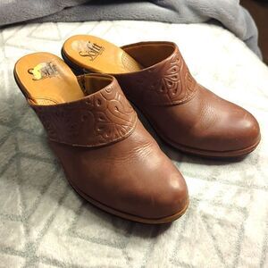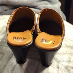 clogs are in nice pre-owned condition. they have been worn just a few times and are very clean. there is a little rubbing on the inside where the stickers were from the sale tags but the clogs themselves on the outside or great as shown in photos.