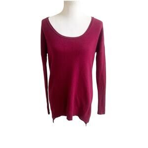 Sofia 100% Cashmere Sweater Burgundy Wine Long Sleeve Size Small Scoop Neck