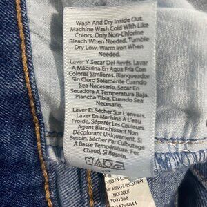 Fraying at hems as design detail, no visible flaws or damage. waist across = 16 inches, inseam = 30 inches.