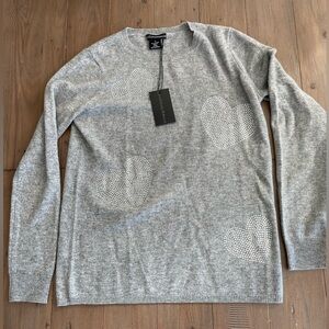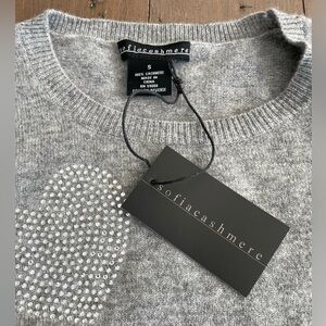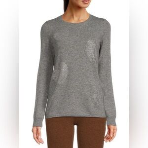 Sofia Cashmere 100% cashmere embellished love heart sweater in grey NWT