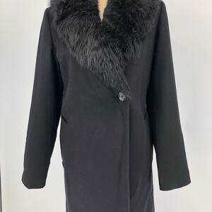 Sofia Cashmere Women Long Full Length Coat 6 Black Fur Collar Wool Cashmere NWOT
