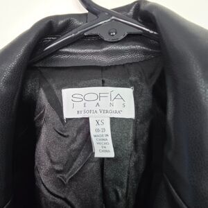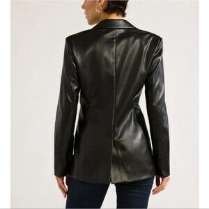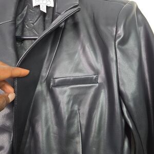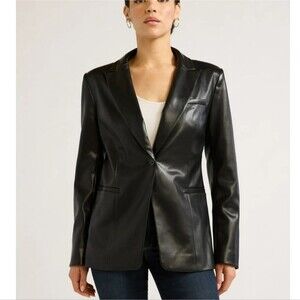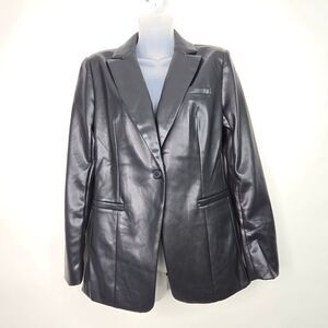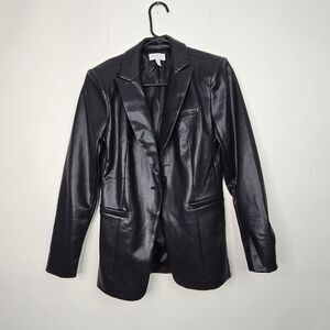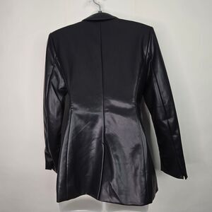 Elevate your style with this sleek black faux leather blazer. Perfect for any occasion, it adds a touch of sophistication to your wardrobe.