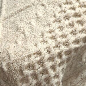 Sofia Jeans M Cream Cable Knit Cold Shoulder Turtleneck Sweater Metallic Sequins