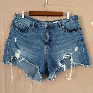 Sofia Jeans Mid Rise Medium Wash Distressed Denium Shorts Women's Size 18
