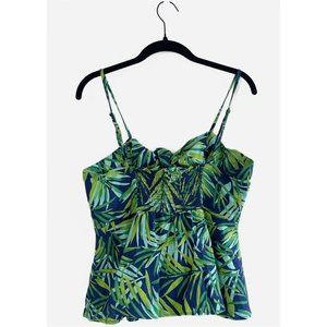 Sofia Jeans Sofia Vergara Tank Top Sz Medium Green Blue Peplum Linen Tropical